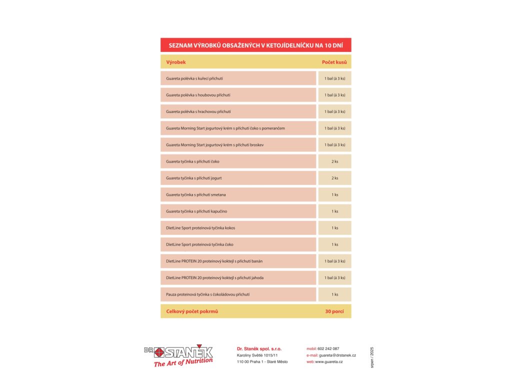 Zácpa | jednotlivé pokrmy Guareta® a DietLine® jsou prakticky bezezbytkové, a proto může být narušena pravidelnost vyprazdňování. Doporučujeme během plánu užívat vlákninové přípravky Guareta®. Dodržujte zároveň dostatečný příjem vody. |