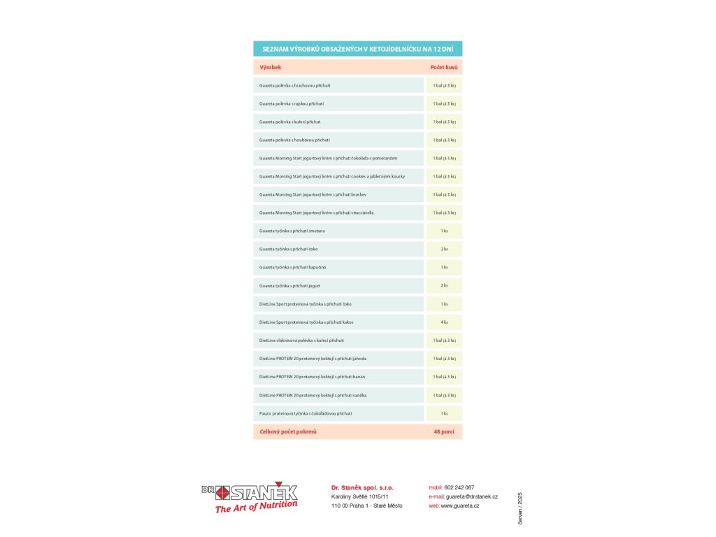 KetoJídelníček na 12 dní, 48 porcí, 2800 g
